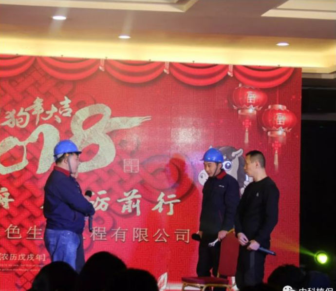 第三部分,公司員工自編自演的聯歡晚會,詩朗誦、歌曲、小品,節目形式多樣,時而熱情搞笑,時而動人心弦,聯歡會中間還穿插了《擊鼓傳氣球》、微信搶紅包的互動游戲,公司領導與員工親切互動,大家用心投入其中,展示了中科人的活力與風采,呈現出中科這個大家庭的歡樂和諧。