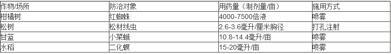 本品屬抗生素類殺螨劑,對(duì)螨類具有觸殺和胃毒作用,并有微弱的熏蒸作用,無內(nèi)吸作用,主要抑制成、若螨神經(jīng)傳導(dǎo),使接觸藥劑后出現(xiàn)麻痹癥狀,2-4天后死亡,致死作用較慢。