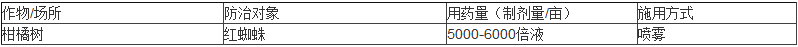 本品為具有觸殺和胃毒作用的復配型殺螨劑,能夠抑制害螨體內脂肪合成,阻斷能量代謝,并能抑制螨的變態過程,對螨的各個發育階段都有效,見效快,持效期長。