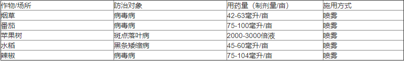 本品屬于胞嘧啶核苷肽型廣譜抗生素殺菌劑,具有預防、治療作用。本品可延長病毒潛育期、破壞病毒粒體結構,降低病毒粒體濃度,提高植株抵抗病毒的能力而達到防治病毒病的作用;同時本品還可抑制真菌菌絲生長,并能誘導植物體產生抗性蛋白,提高植物體的免疫力。