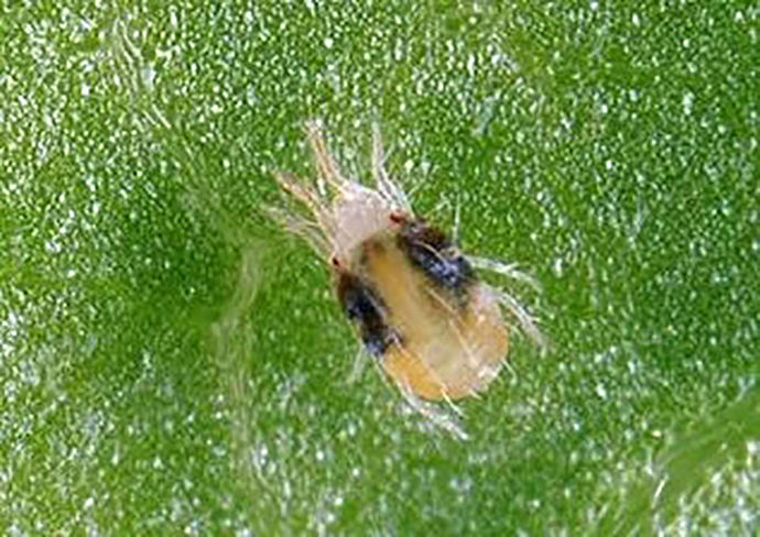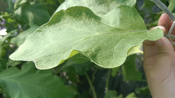 二斑葉螨主要危害上部嫩葉,使葉片呈淡黃色斑或白色,嚴重影響葉片光合作用,受害的葉片背面有灰褐色的油狀光澤,葉片僵硬,畸形生長,表現癥狀與病毒病、激素中毒狀類似。