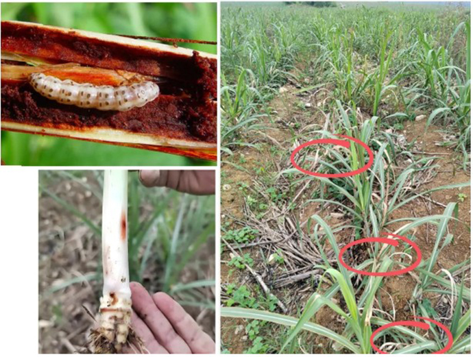 條螟:橫向蛀食生長點,形成"斷頭"現象,伴隨莖稈空心腐爛。